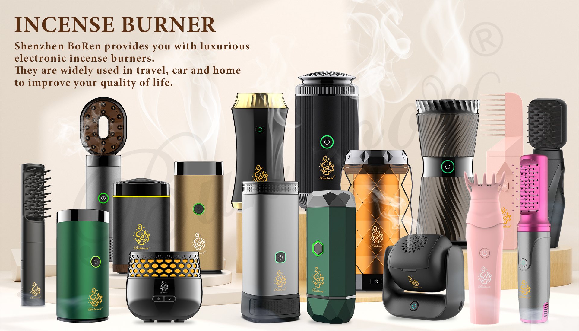 Shenzhen BoRen Technology Co., Ltd is located in Shenzhen and is specialized in manufacturing electronic incense burner. With an experienced and professional team, we have exported our products to many countries and regions all over the word, especially the middle east such as SA and UAE. Our products enjoy a good reputation among our customers. We welcome customers, business associations and friends from all parts of the world to contact us and seek cooperation for mutual benefits M O R E